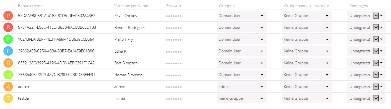 HINWEIS zum ScreeShot: die Gruppierung DomainUser wurde während des Test's händisch angelegt!