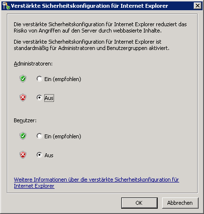 Wenn Sie die oben genannten Schritte durchgeführt haben, wurde die "verstärkte Sicherheitskonfiguration für den IE" auf den Servern deaktiviert.