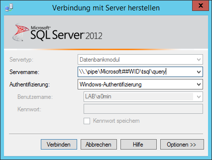 - Starten Sie das SQL Management Studio 2012 Express Tool - LINK siehe unten.
