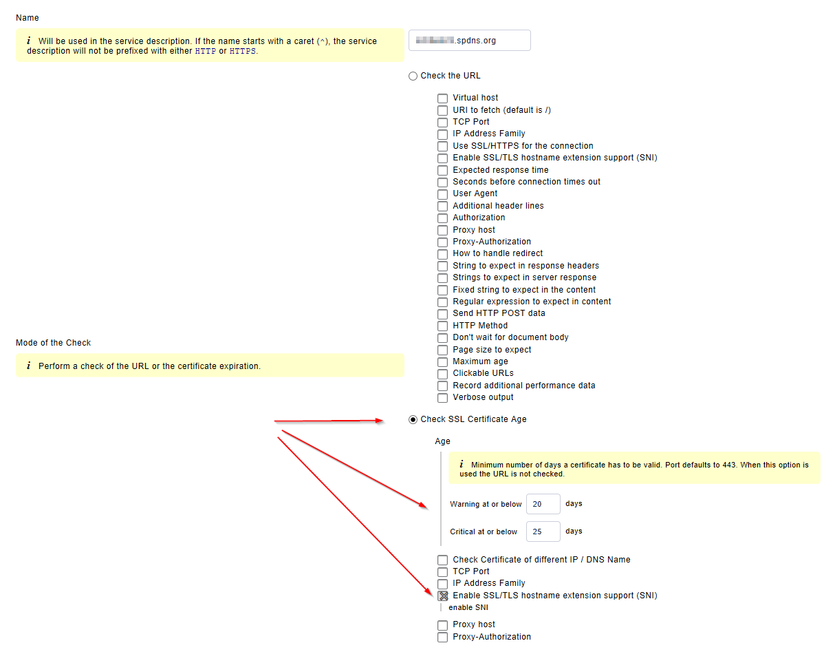 - Unter der Sektion CHECK HTTP SERVICE geben Sie folgende Kreterien an: