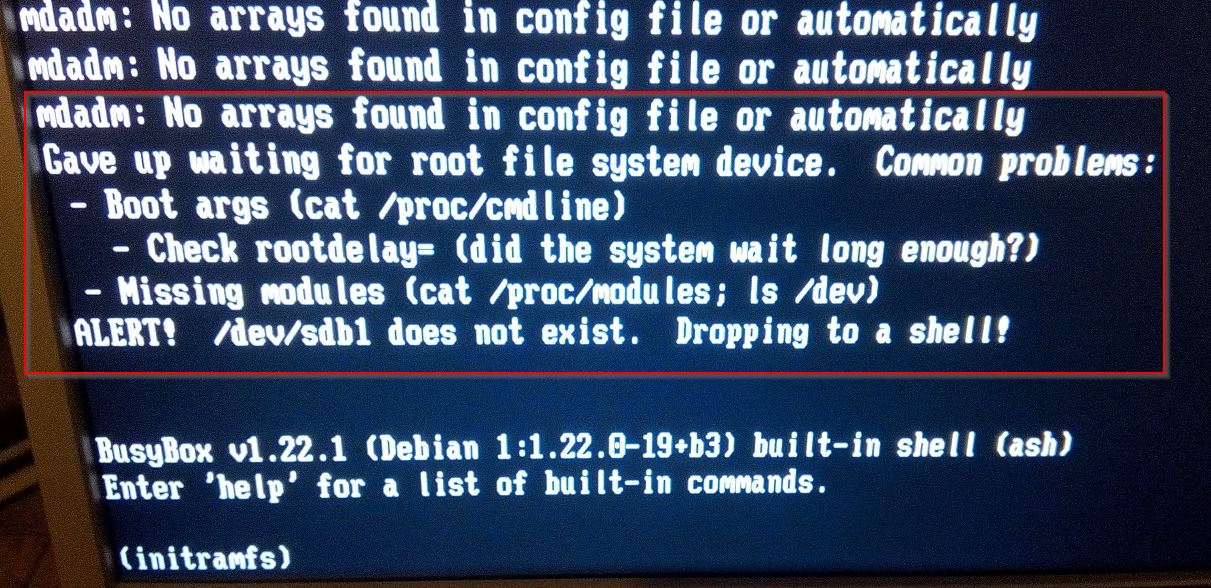 ALERT! /dev/sda1 does not exist.