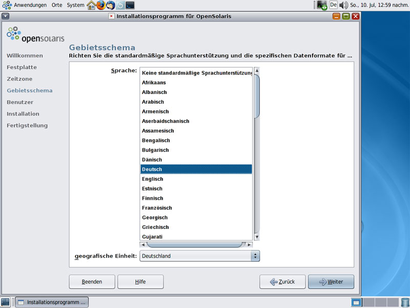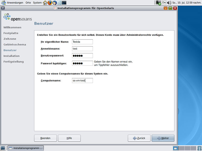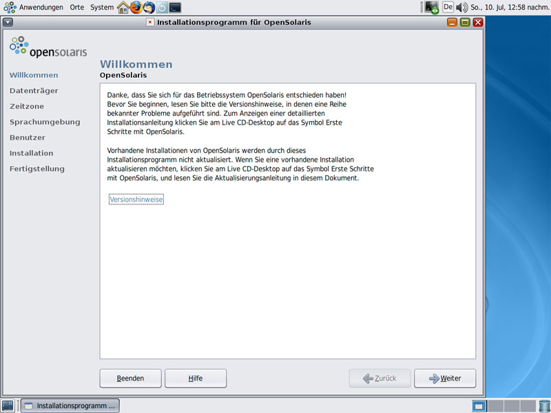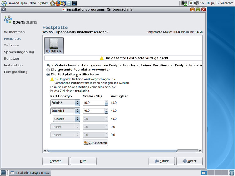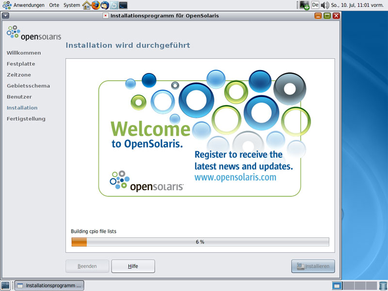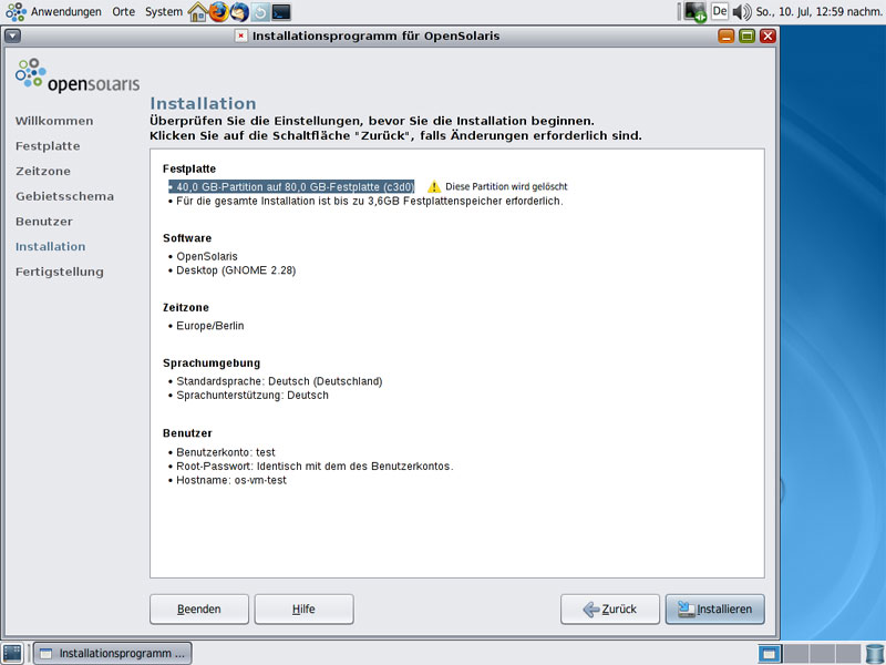 Schritte - OpenSolaris Installation: